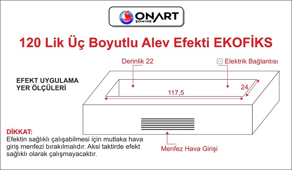 120 cm lik minimal tasarıma sahip olan üç boyutlu alev efekti, her mekanda kullanılabilecek bir üründür.