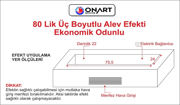 80 lik ekonomik serisi odunlu üç boyutlu alev efekti, herhangi bir alanda kullanılabilecek şekilde tasarlanmıştır. Hem iç mekanlarda hem de dış mekanlarda kullanılması mümkündür.
