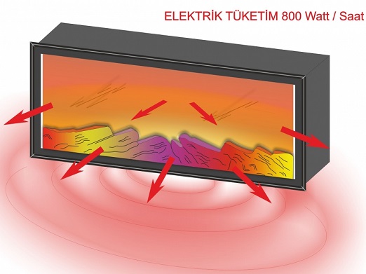 Sıcaklığı camdan güneş gibi yayarak ortamı geniş bir alandan ısıtır.