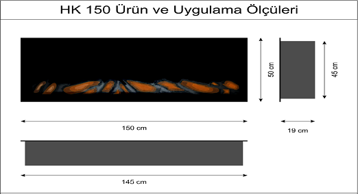 HAYALET KUMANDA ile efekti açıp kapatabilirsiniz. Efektin alev parlaklığı 5 kademe ayarlana bilinir. Ses efekti açılıp kapanabinir. Animasyon (köz ve odun efekti) açıp kapatıla bilinir. (Animasyon belli bir döngü ile odun arkasında canlanma ve alev içinden çıkan mavi köz ışığıdır.) 6 mm temperli füme ön cam. Efekt kullanılmadığı durumlarda, kapalı iken televizyon altı veya tek kullanımlarda içindeki detayı daha az göstererek farklı bir görsellik oluşturur.