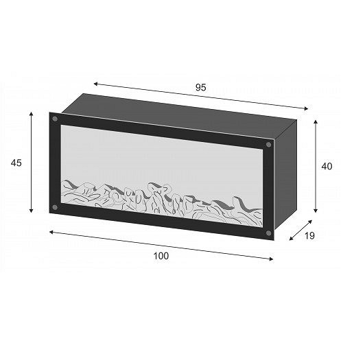 Ekran Ölçüler: en 100 cm, derinlik 19cm, yükseklik 45 cm.